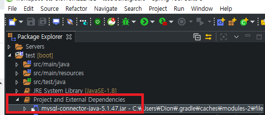 ※ 프로젝트 Dependencies에 mysql-connector-java.jar파일이 추가됩니다.