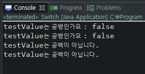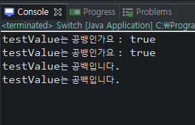 System.out.println("testValue는 공뱅인가요 : "+ "".equals(testValue));